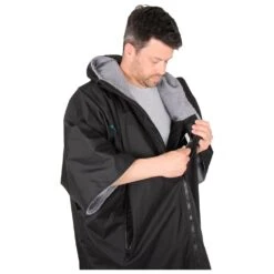 Après une longue session de randonnée, le poncho Therma Robe Short Sleeved de Lifeventure saura vous réconforter comme il se doit. Il est composé d’un extérieur coupe-vent et imperméable qui vous protège des éléments ainsi que d’une doublure en polaire qui vous apportera de la chaleur et du confort. Vous pourrez l’utiliser pour vous changer afin de rester à l’abris des éléments ou bien comme d’une veste. Ses manches sont extensibles pour plus d’aisance et il sera facile de l’enfiler et de l’enlever grâce à sa fermeture éclair sur toute la longueur. Ce poncho est équipé d’une capuche et de deux poches mains toutes doublées pour un confort accru.