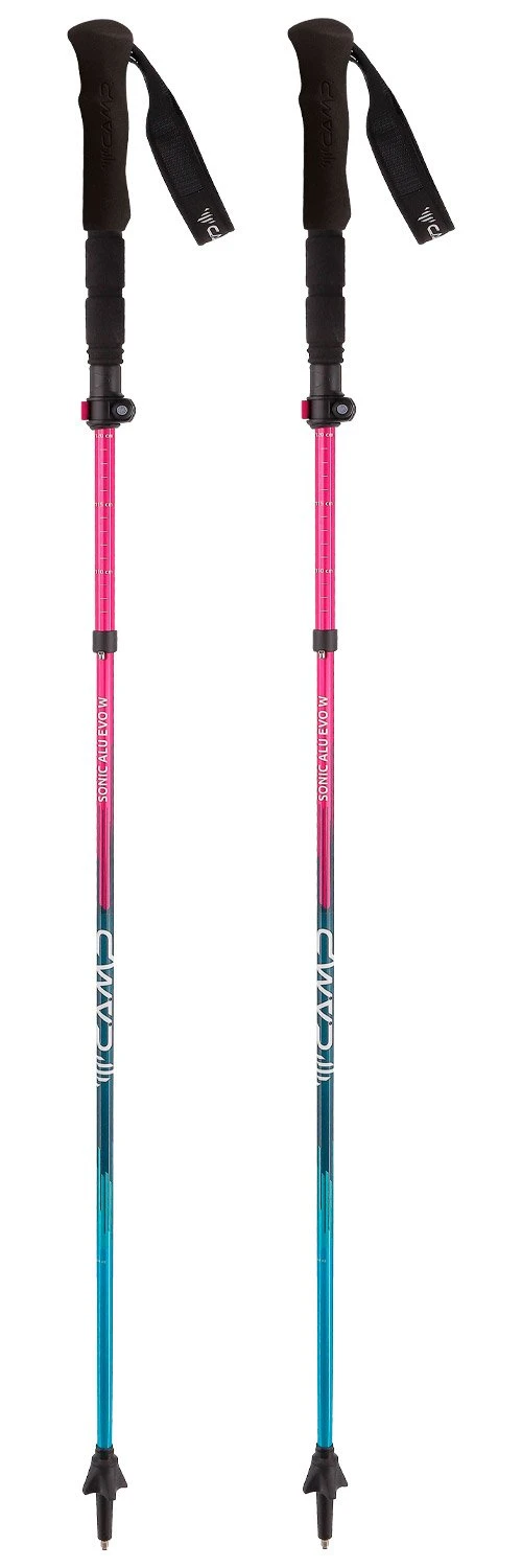 Ces bâtons de randonnée ou trail running Camp sont conçus spécifiquement pour les femmes. La marque a porté une attention particulière aux proportions et aux longueurs. Ces bâtons pliables et ajustables (de 107 à 125 cm) sont fabriqués en aluminium. Leur conception en 5 segments leur permet de ne mesurer que 34 cm une fois repliés. La double poignée en mousse est confortable et offre de multiples positions de prise en main. Les dragonnes ergonomiques sont différentes à droite et à gauche pour un confort maximal. Ce bâton de trekking léger est facile à monter et démonter grâce à son système de cordelette interne.