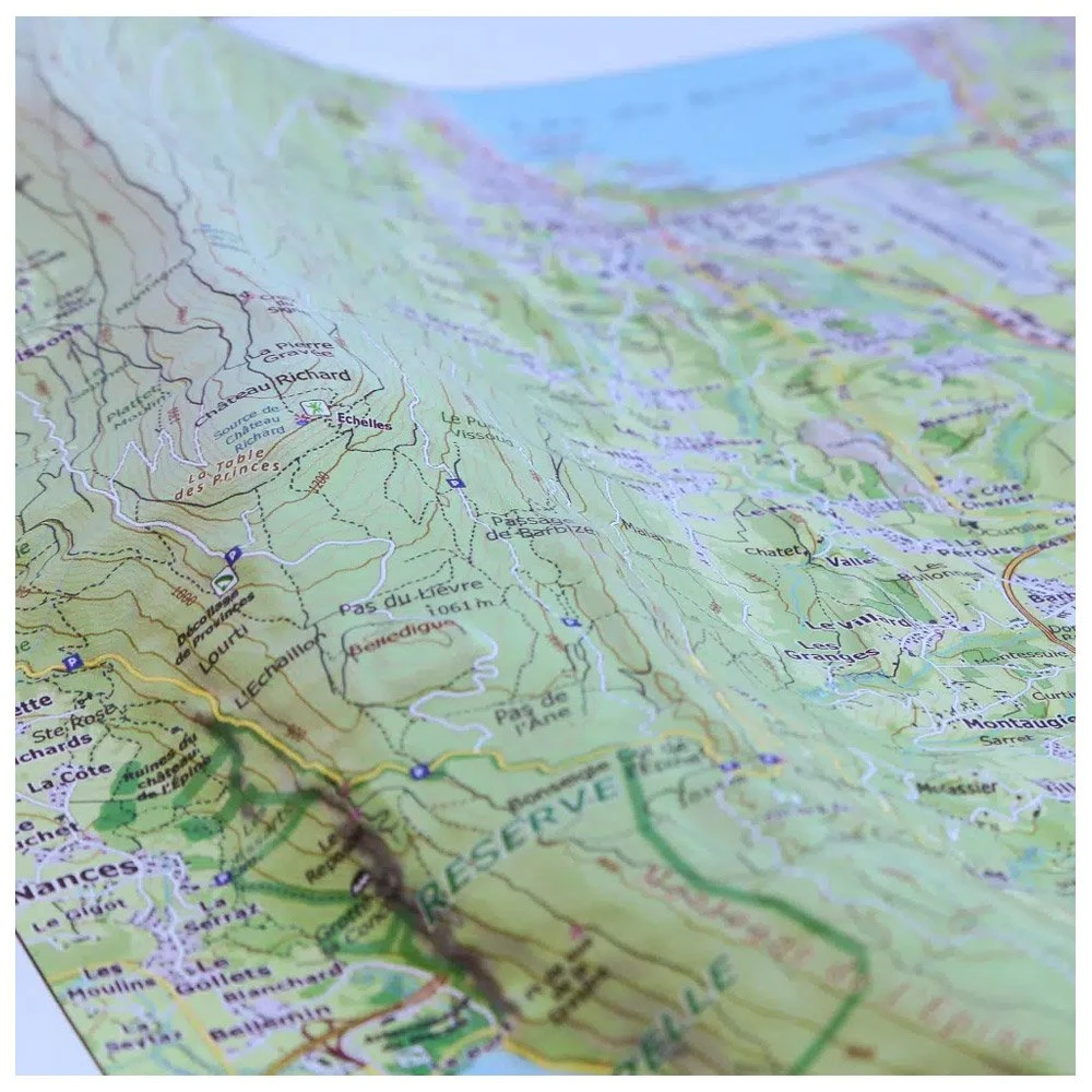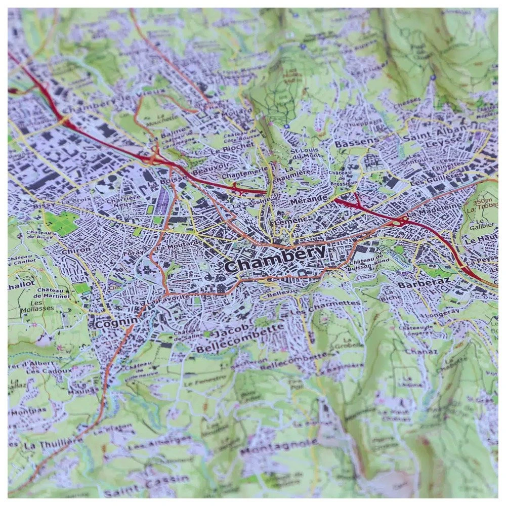 La carte en relief mise au point par la sociĂ©tĂ© d’Ă©dition auvergnate DĂ©nivelĂ©s propose de s’immerger au sud du lac du Bourget, Ă ChambĂ©ry plus exactement et dans les alentours. Les amoureux de nature et les passionnĂ©s d’activitĂ©s outdoor (trail running, parapente, varappe, escalade, alpinisme, vĂ©lo, VTT, randonnĂ©e, …) peuvent ainsi dĂ©couvrir leurs futurs terrains de jeu : Mont du Chat, Mont du Nivolet, Mont de la Buffaz, etc. IdĂ©ale pour prĂ©parer vos prochaines escapades en montagne, cette carte topographique avec courbes de niveau permet d’apprĂ©hender les cols, les sommets, leur altitude, les crĂŞtes, les combes et les vallĂ©es.