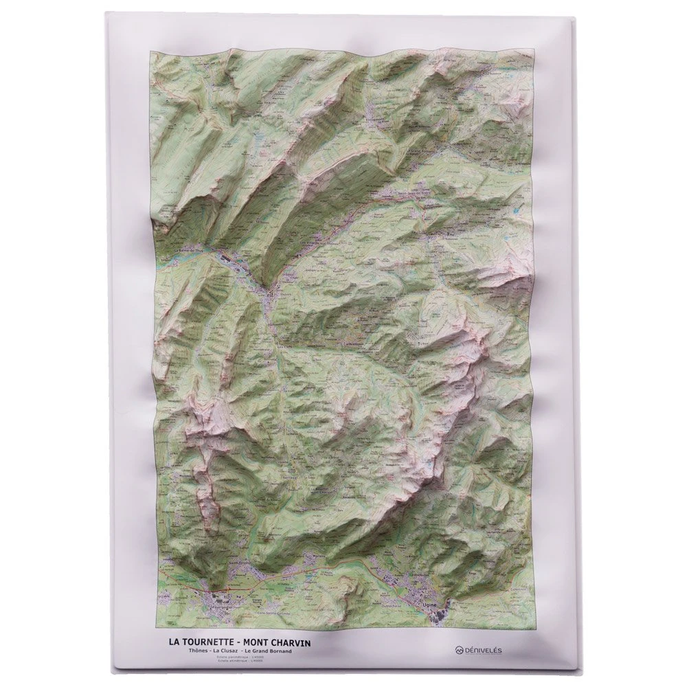 Conçue par la sociĂ©tĂ© d’Ă©dition auvergnate DĂ©nivelĂ©s, la carte topographique 3D propose de s’immerger dans les reliefs montagneux de La Tournette et du Mont Charvin. Les amoureux de nature et les passionnĂ©s d’activitĂ©s outdoor (ski de rando, trail running, parapente, varappe, escalade, alpinisme, vĂ©lo, VTT, randonnĂ©e, …) peuvent ainsi dĂ©couvrir leurs futurs spots : au sud-est, l’aiguille du Bouchet et les aiguilles du Mont constituent le pied des Aravis d’oĂą se dĂ©tache le Mont Charvin qui culmine Ă 2 409 m d’altitude. Sur l’autre rive de la vallĂ©e du Nom, plus au nord-ouest, un ensemble de chaĂ®nes concentriques coupĂ©es par le Fier forme un relief atypique d’oĂą s’échappe les monts de La Tournette, le Mont Lachat, la montagne des Auges et plus au nord  la montagne des FrĂŞtes. IdĂ©ale pour prĂ©parer vos prochaines sorties, cette carte en relief avec courbes de niveau permet d’apprĂ©hender les cols, les sommets, leur altitude, les crĂŞtes, les combes et les vallĂ©es.Â