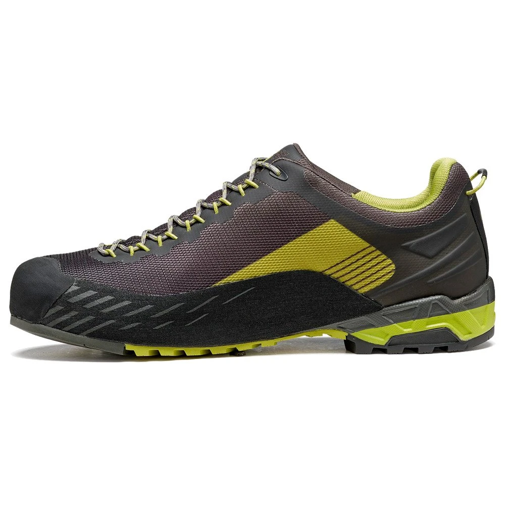 La Eldo GV est une chaussure d’approche Ă tige basse, idĂ©ale pour crapahuter avant d’attaquer la vĂ©ritable escalade. Elle est lĂ©gère avec une tige en Polyester technique et sans couture. Sa semelle intĂ©rieure est confortable, tandis que sa semelle extĂ©rieure en caoutchouc Asolo/Vibram AG avec MegaGrip lui offre une bonne adhĂ©rence sur la roche. Au niveau de la pointe de la chaussure, une « climbing zone » plate et rigide est conçue pour escalader les parois plus difficiles et plus raides. Sa membrane impermĂ©able en Gore-Tex vous permet de garder vos pieds au sec tout en les laissant respirer, afin d’attaquer vos ascensions dans les meilleures conditions.