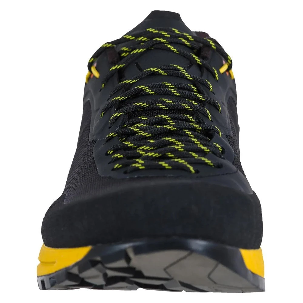 La Tx Guide est une chaussure d’approche technique pour les pratiquants Ă la recherche d’un produit performant et durable. Elle offre polyvalence, lĂ©gèretĂ© et protection dans les terrains accidentĂ©s et rocailleux. Sa conception utilise des Ă©lĂ©ments des modèles de running/approach et d’escalade. La forme Tech Fit Ă©purĂ©e et enveloppante et le laçage asymĂ©trique dĂ©marrant loin sur l’avant du pied assurent prĂ©cision et ajustement pour un maintien parfait. Cette chaussure est très stable en pointe, la climbing zone offre une meilleure accroche. La tige est hautement rĂ©sistante Ă l’abrasion, de plus elle est dotĂ©e de renforts en TPU. La languette Ă soufflet empĂŞche les Ă©lĂ©ments extĂ©rieurs de rentrer dans la chaussure. La semelle intermĂ©diaire double EVA assure amortissement et stabilitĂ© tandis que la semelle Vibram offre de l’adhĂ©rence dans toutes les conditions. Â