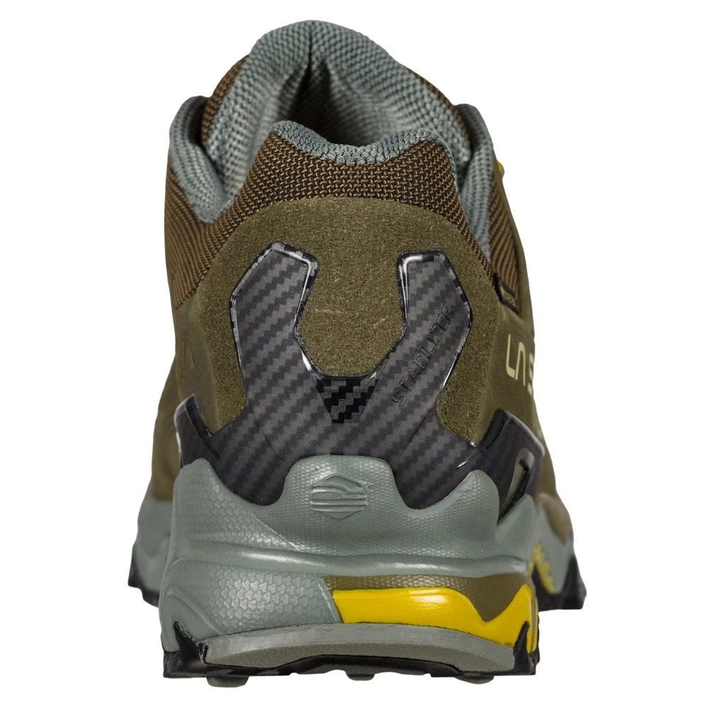 La chaussure de randonnĂ©e Ultra Raptor II de La Sportiva est dotĂ©e d’une tige basse en nubuck couplĂ©e Ă une membrane Gore-Tex Extended Comfort assurant impermĂ©abilitĂ© et respirabilitĂ©. Le signe d’une vraie chaussure tout terrain. Grâce au confort et Ă l’amortissement apportĂ©s par la semelle intĂ©rieure Ortholite et la semelle intermĂ©diaire Memlex en EVA vous allez pouvoir marcher en montagne sur longues distances. D’autant plus que la semelle extĂ©rieure FriXion Blue se charge d’assurer une adhĂ©rence maximale sur tous les terrains tout en Ă©tant très rĂ©sistante Ă l’abrasion. Â
