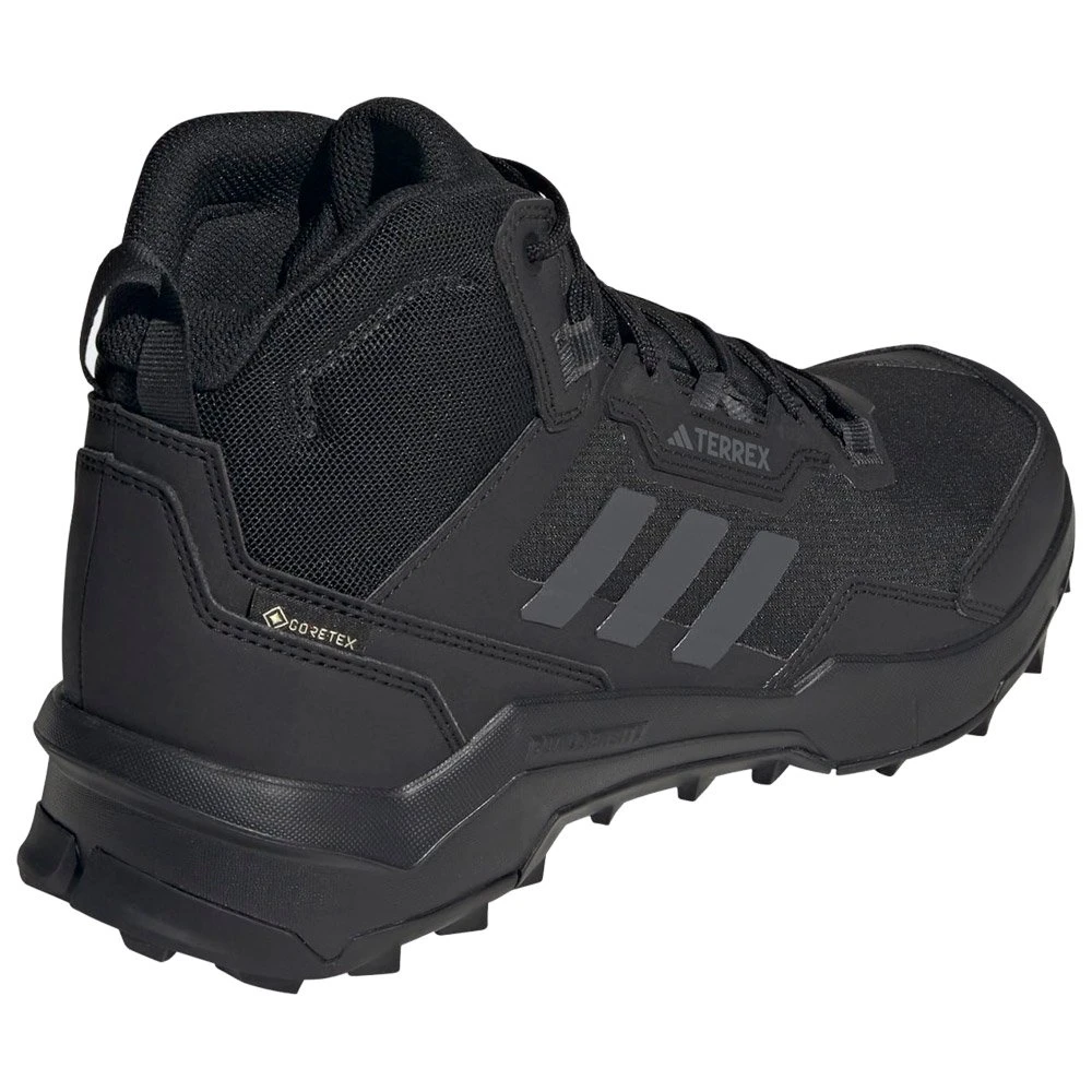 IdĂ©ales pour explorer sans contraintes, les chaussures de randonnĂ©es pour homme Adidas Ax4 Mid Gtx sont conçues avec une membrane Gore-Tex impermĂ©able et respirante et une semelle en caoutchouc Continental. Vos pieds restent ainsi au sec et gardent une bonne accroche afin de pouvoir faire de la randonnĂ©e dans toutes les conditions. Cette paire en version Mid permet un maintien de cheville lĂ©ger et la semelle en EVA double densitĂ© offre un bon amorti, pour un pas plus confortable. CertifiĂ© Primegreen, ce modèle est issu d’une conception Ă©coresponsable et la tige utilise 50 % de matĂ©riaux recyclĂ©s.Â