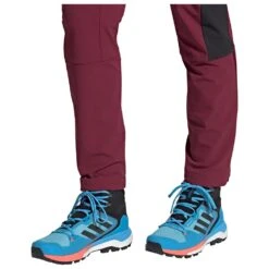 La chaussure de randonnĂ©e pour femme Adidas Terrex Skychaser 2 Mid Gtx est un modèle conçu pour vous apporter confort, maintien et accroche lors de vos escapades en pleine nature. Elles intègrent une membrane Gore-Tex impermĂ©able qui protège efficacement vos pieds de l’humiditĂ©. La tige textile est dotĂ©e d’une protection anti-boue en TPU soudĂ©e pour empĂŞcher la terre ou les petits cailloux de s’infiltrer. La semelle intermĂ©diaire en EVA offre plus de stabilitĂ©, tandis que la technologie Boost assure un bon amorti et dispose d’une plaque de protection contre la roche. La semelle extĂ©rieure en caoutchouc Continental permet de bĂ©nĂ©ficier d’une adhĂ©rence optimale sur terrain sec comme humide pour garder un pas sur en toutes circonstances.Â