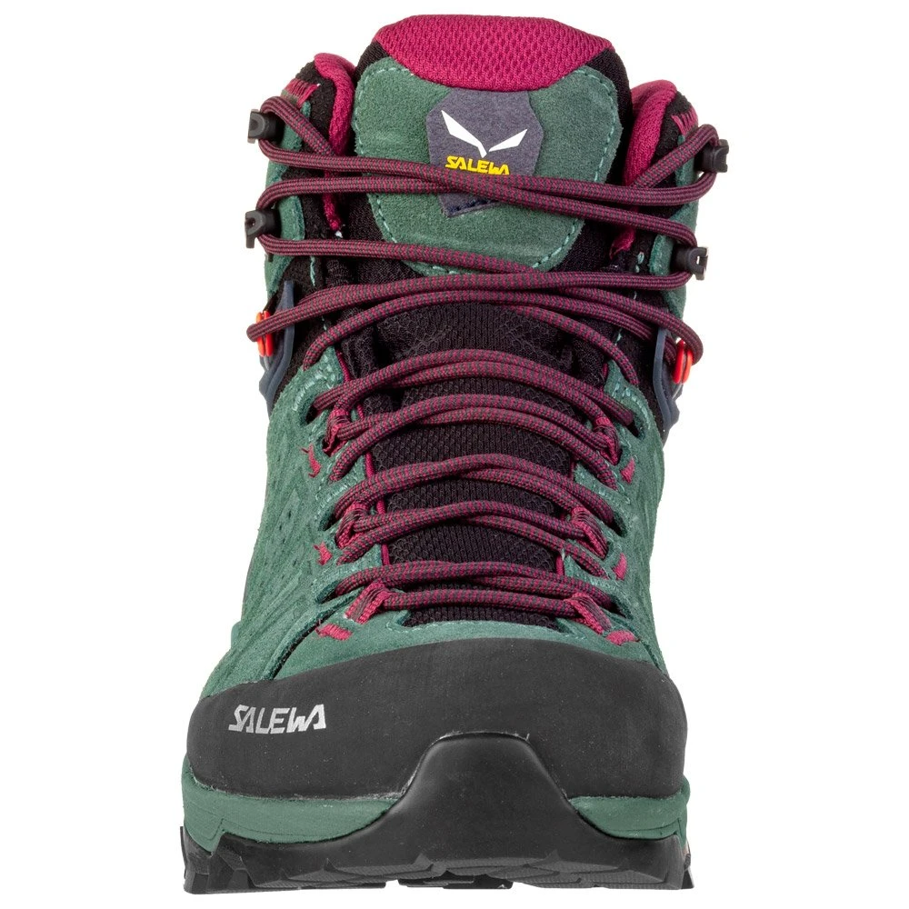 La chaussure de randonnĂ©e pour femme Salewa Alp Trainer 2 Mid GTX est un modèle en coupe mi-haute avec une finition en cuir de daim et des bords en caoutchouc protecteur, conçu pour vous apporter soutien, confort et accroche. La membrane Gore-Tex intĂ©grĂ©e est impermĂ©able pour protĂ©ger le pied de l’humiditĂ© tout en Ă©tant respirante. Le Flex Collar Soft favorise une grande amplitude de mouvement Ă la cheville, idĂ©al pour les descentes, tandis que le pare-pierre en caoutchouc protège des impacts avec de la roche. La semelle extĂ©rieure Vibram Alpine Hiking confère un pas adhĂ©rent et très stable sur tous les terrains et la semelle interne Multi Fit Footbed Plus offre la possibilitĂ© de personnaliser le volume avec des couches intermĂ©diaires interchangeables pour un fit optimal. Enfin, les lacets d’escalade assurent un rĂ©glage prĂ©cis, jusqu’aux orteils.Â