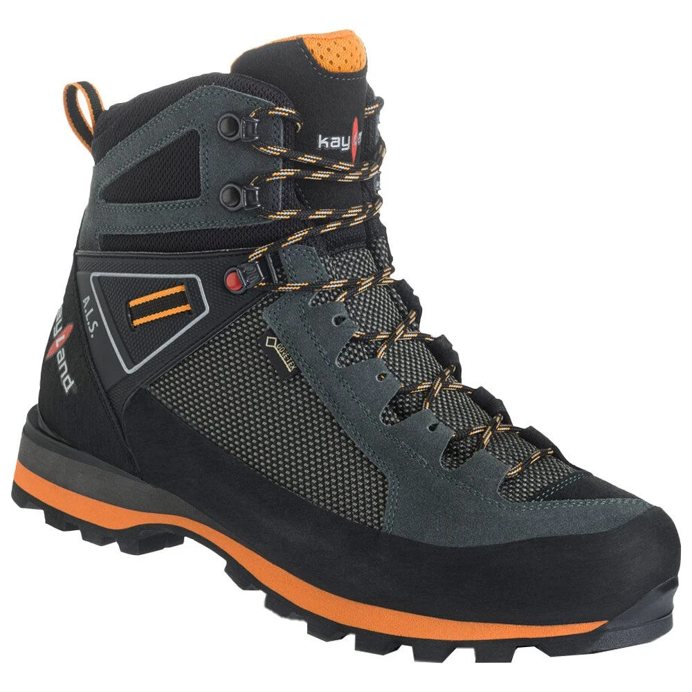 La Cross Mountain Gtx de Kayland est une chaussure de trek spĂ©cialement conçue pour offrir confort et performances sur des terrains mixtes, y compris des pentes de montagne. Que les passages soient techniques et rocheux, avec de la neige ou encore de la glace ce modèle est prĂ©parĂ© pour une utilisation avec des crampons semi-automatiques. Vous aurez donc la possibilitĂ© de faire de la randonnĂ©e bien chargĂ©e comme du petit alpinisme. Elle est fabriquĂ©e avec des matières rĂ©sistantes Ă l’abrasion et dotĂ©e d’une membrane Gore-Tex Performance Comfort pour une respirabilitĂ© maximale. Elle saura donc protĂ©ger vos pieds contre la pluie, les cailloux et l’humiditĂ© tout en vous assurant un maintien confortable grâce Ă son système Ankle Lock qui va protĂ©ger votre cheville. En plus, le système de laçage Ă©tendu combinĂ© Ă une fermeture asymĂ©trique offre des sensations plus prĂ©cises et permet au pied de flĂ©chir dans sa position naturelle. La semelle intercalaire microporeuse durable procure de son cĂ´tĂ© un excellent amorti et la semelle extĂ©rieure Vibram Mulaz Evo avec ses crampons de 5 mm assure une adhĂ©rence optimale afin de ne glisser nulle part. De gros pare-pierres sont Ă©galement prĂ©sents pour vous protĂ©ger de toutes les agressions de la montagne.