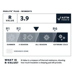 Le Prolite Plus WR de Therm-a-Rest est un modèle plus petit en longueur que les autres versions afin de notamment s’adapter aux femmes. Il propose également une R-value supérieure de 3,9 qui le rend plus chaud pour une utilisation 3 saisons. Sa mousse de 3,8 cm d’épaisseur est confortable et permet une bonne compressibilité lorsque vous devez l’enrouler permettant de prendre moins de place. Le matelas est autogonflant et vous pourrez insuffler de l’air en plus pour obtenir la fermeté que vous souhaitez grâce à sa valve WingLock.
