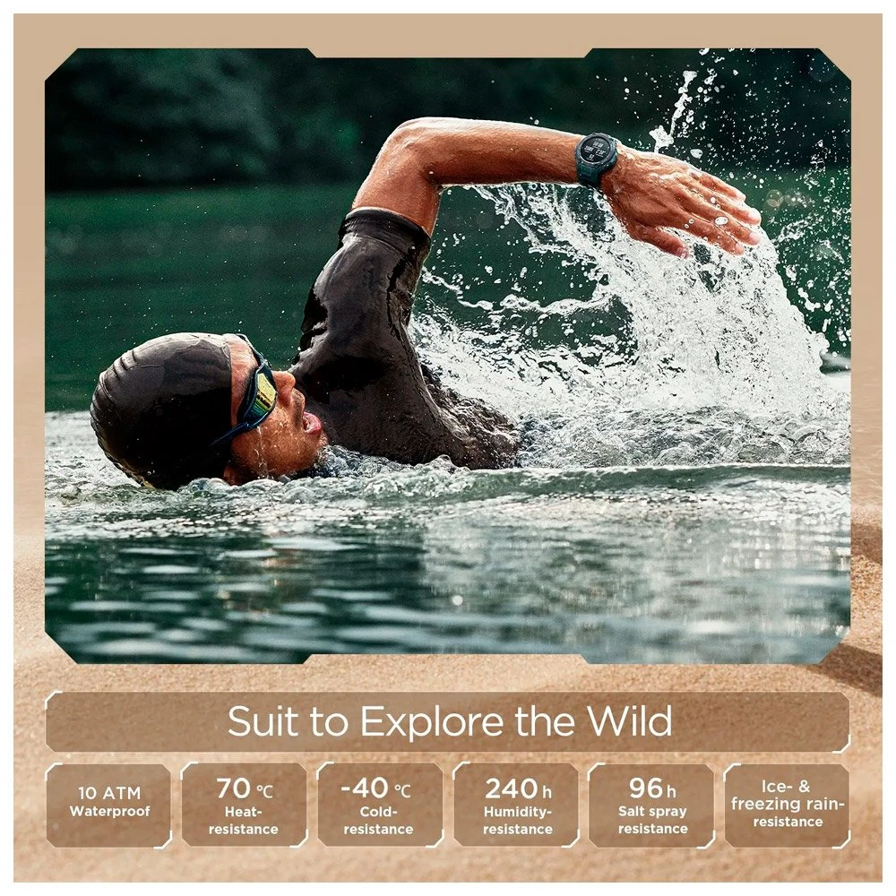 IdĂ©ale pour ceux et celles qui ont un style de vie actif, la montre connectĂ©e Amazfit T-Rex Pro bĂ©nĂ©ficie de technologies avancĂ©es pour faire un suivi prĂ©cis de vos activitĂ©s du quotidien et de vos performances sportives, quelles que soient les conditions. Avec son Ă©cran AMOLED HD de 1,3 pouce et ses capteurs intĂ©grĂ©s, elle est parfaite pour les sports d’endurance tels que la course Ă pied, la natation et le cyclisme. Elle calcule votre frĂ©quence cardiaque, votre distance parcourue, votre vitesse et les calories brĂ»lĂ©es lors de l’exercice. Son autonomie de 18 jours en mode classique et 40h en mode GPS, ainsi que sa rĂ©sistance Ă l’eau font d’elle un puissant outil d’entraĂ®nement partciulièrement bien conçu.