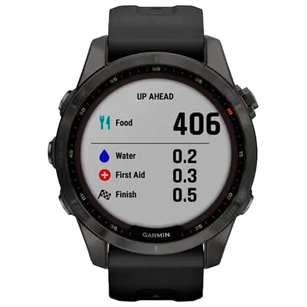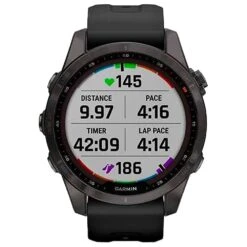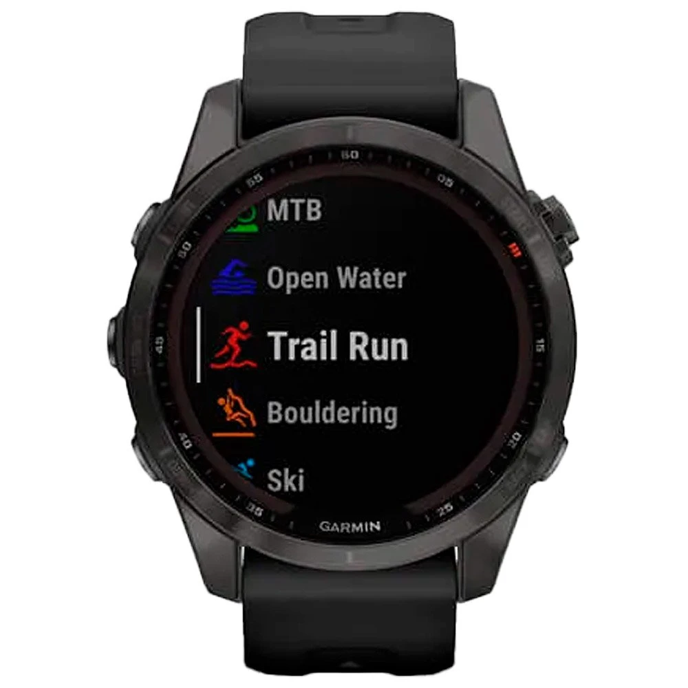 La montre GPS Garmin Fenix 7S Sapphire Solar Edition est une version plus haut de gamme que la Fenix 7S. Elle dispose d’une mĂ©moire interne deux fois plus grande, intègre un capteur solaire qui rallonge la durĂ©e de la batterie ainsi qu’un verre Power Sapphire qui offre une plus grande rĂ©sistance aux chocs, Ă l’eau et Ă la chaleur. De nombreuses fonctionnalitĂ©s sont disponibles telles que les fonctions classiques d’heure, date, rĂ©veil, chronomètre, minuteur et heures de lever/coucher du soleil. Le GPS bĂ©nĂ©ficie d’une compatibilitĂ© multi GNSS pour de meilleures performances, et les fonctions frĂ©quence cardiaque continue ou au repos ainsi que suivi du stress et de la respiration sont Ă©galement intĂ©grĂ©s. Les Smart Notifications vous permettent de recevoir vos messages, alertes et emails sur la montre.Â