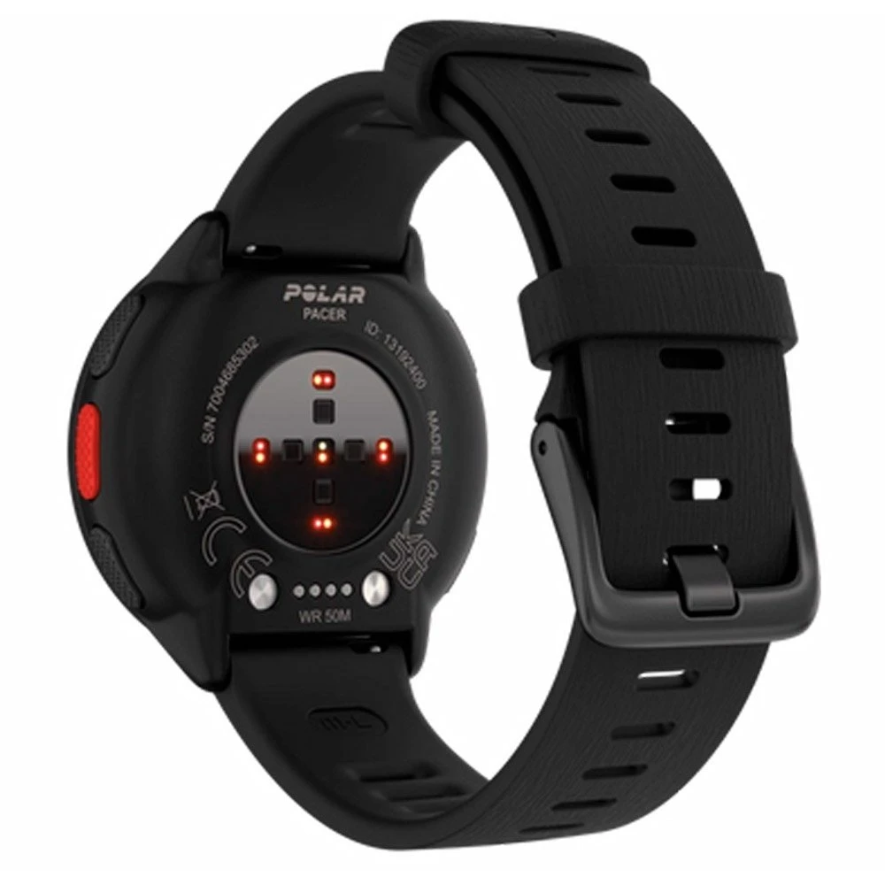La montre GPS Polar Pacer Hook and Loop est très complète et durable grâce Ă un boitier en plastique rĂ©sistant couplĂ© Ă un Ă©cran en verre Gorilla Glass 3.0. L’affichage MIP permet une lecture facile des donnĂ©es, tandis que l’Ă©cran lumineux garantit une lisibilitĂ© optimale en toutes conditions. La montre est Ă©galement dotĂ©e de la technologie de gĂ©olocalisation et de navigation (GPS, Glonass, Galileo et QZSS), d’un capteur de frĂ©quence cardiaque (Precision Prime) et d’une connectivitĂ© Bluetooth 5.1. Elle est Ă©tanche jusqu’Ă 50 mètres et fonctionne parfaitement dans des tempĂ©ratures allant de -10 °C Ă + 50 °C. La montre offre une multitude de fonctionnalitĂ©s avancĂ©es, comme la fonction Training Load Pro, la fonction Hill Splitter, le Guide d’itinĂ©raire, le Retour au point de dĂ©part, les Sources d’Ă©nergie, FitSpark ou FuelWise. Elle permet Ă©galement de suivre l’activitĂ© physique 24h/24 et 7j/7 grâce au compteur de pas intĂ©grĂ©. Enfin, la montre se synchronise facilement avec votre smartphone pour transfĂ©rer vos donnĂ©es sur l’application Polar ou pour controler votre musique.