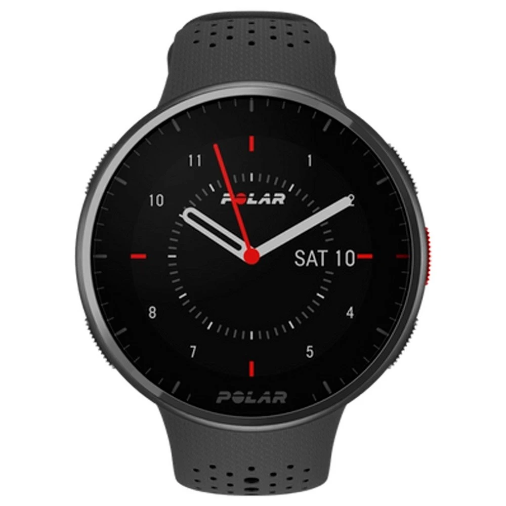 La montre GPS Polar Pacer Pro est un modèle offrant des fonctions avancĂ©es de suivi de parcours et de vos performances. Elle permet de planifier ses entraĂ®nements, de se fixer de nouveaux objectifs, de voir sa progression, etc. Elle intègre des capteurs pour mesurer la frĂ©quence cardiaque, ainsi que de très nombreuses fonctionnalitĂ©s (voir liste ci-dessous). Le système de gĂ©olocalisation et de navigation associe les systèmes GPS (USA), Glonass (Russie), QZSS (Japon) et Galileo (Europe) pour un positionnement rapide et prĂ©cis oĂą que vous soyez. Étanche, cette montre Polar bĂ©nĂ©ficie d’un Ă©cran Gorilla Glass 3.0 ultra rĂ©sistant contre les chocs. RĂ©troĂ©clairĂ©, il s’adapte aux changements d’intensitĂ© de la lumière, restant toujours parfaitement lisible. Très lĂ©gère, la Pacer Pro dispose Ă©galement d’une batterie rechargeable offrant 35h, 100h ou 7 jours d’autonomie si l’on est respectivement en mode entraĂ®nement, en mode entraĂ®nement avec Ă©conomie d’énergie ou en mode montre connectĂ©e.Â