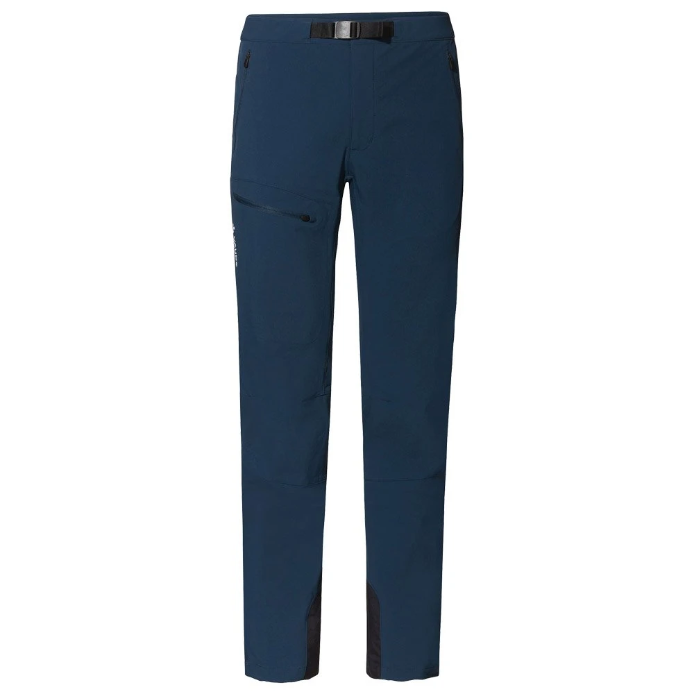 Ce pantalon de randonnĂ©e Softshell est très respirant grâce Ă sa matière stretch qui offre Ă©galement une bonne protection contre le vent. Afin d’affronter de petites averses comme on peut en rencontrer en montagne, ce pantalon est dĂ©perlant. Pour rĂ©guler la tempĂ©rature lors des phases d’ascension, des ventilations sont prĂ©sentes. Les genoux prĂ©formĂ©s favorisent la libertĂ© de mouvement afin de gravir les chemins les plus escarpĂ©s. Ce pantalon Vaude est dotĂ© de multiples poches zippĂ©es pour garder de petits objets Ă porter de main. Â