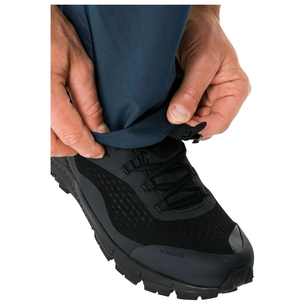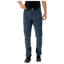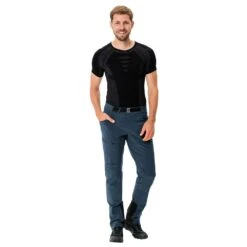 Le pantalon de randonnĂ©e pour homme Vaude Tekoa Biobased est un modèle en construction Softshell, qui s’adaptera aussi parfaitement Ă Â l’alpinisme. A la fois lĂ©ger et extensible pour un confort et une libertĂ© de mouvements totale, il est Ă©galement coupe-vent, dĂ´tĂ© d’un traitement dĂ©perlant durable sans PFC pour rester au sec en cas d’averse, et ultra respirant. Son tissu protège Ă©galement des rayons UVA. Au bas des jambes, on retrouve des inserts en Cordura qui limitent les frottement et protège des dĂ©chirures au contact de la roche, boostant ainsi sa durabilitĂ©. Enfin, pour l’aspect pratique, il est compatible avec le port d’un harnais, et dĂ´tĂ© de nombreuses poches.