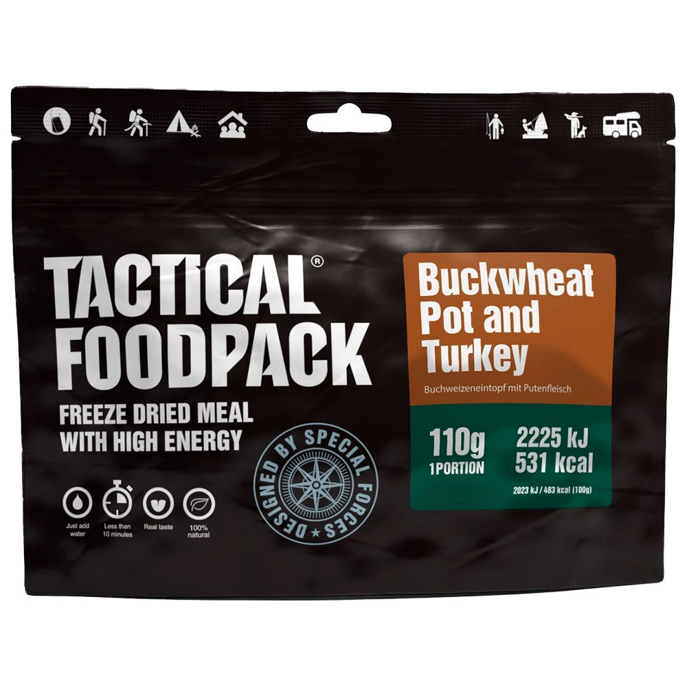 Le Pot de Sarrasin et Dinde 110g Tactical FoodPack est un savoureux repas lyophilisé très pratique pour les bivouacs en pleine nature. Avec ses ingrédients naturels, ce repas vous aidera à reprendre des forces et à vous préparer pour les défis à venir, tout en ne prenant que peu de place dans le sac.