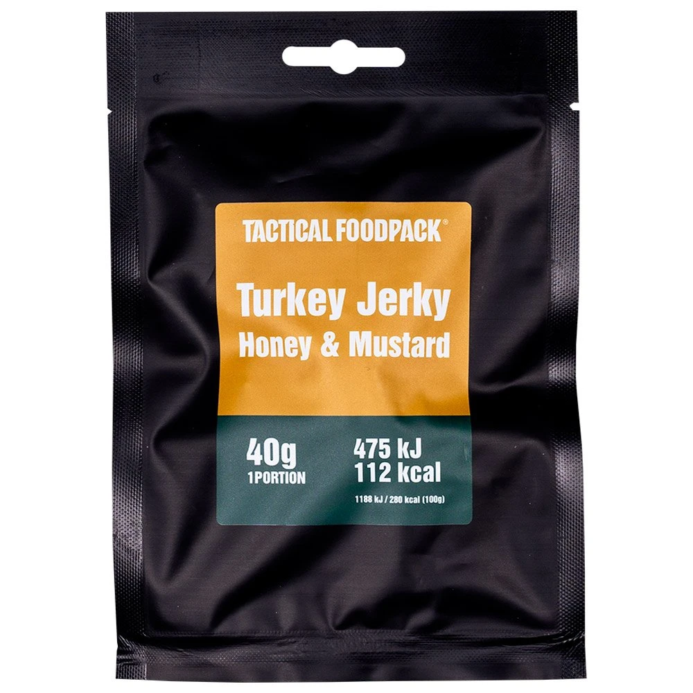 - Dinde séchée Miel et Moutarde – poids net 40 g, valeur énergétique par portion 112 kcal