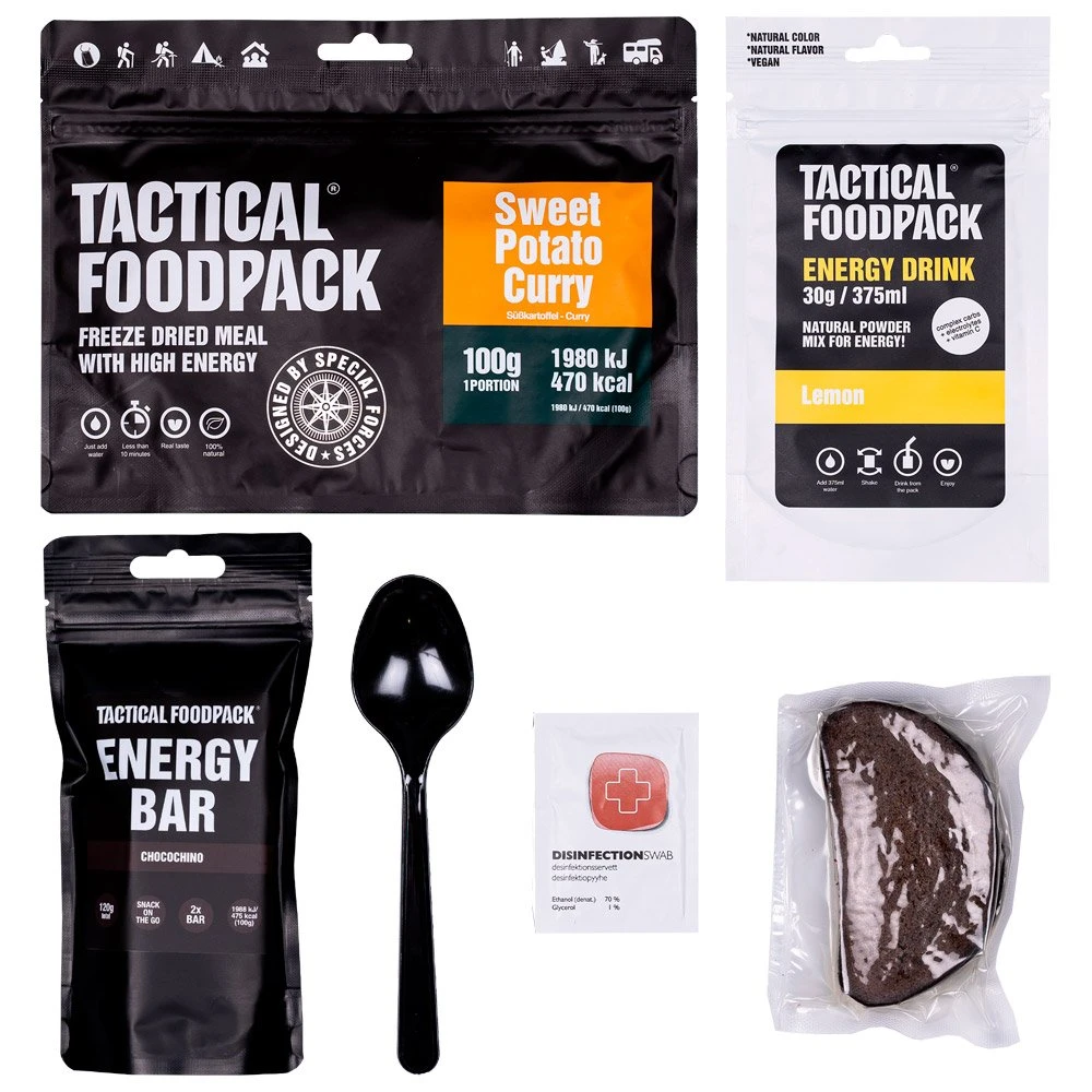 Ne vous laissez pas dĂ©courager par la faim lors de vos activitĂ©s de plein air grâce aux rations de repas lyophilisĂ© Tactical FoodPack. La Ration Vegan 1 Meal Tactical comprend un repas, un en-cas, une barre Ă©nergĂ©tique et une boisson Ă©nergĂ©tique pour un regain d’Ă©nergie rapide ainsi qu’une lingette dĂ©sinfectante pour les mains pour une hygiène personnelle impeccable.