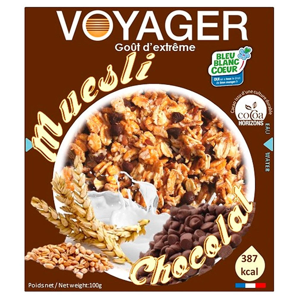 Le Muesli au Chocolat BBC est un petit déjeuner lyophilisé élaboré par Falières Nutrition et sa marque Voyager pour vous assurer une bonne dose d’énergie pour commencer la journée. Idéal en trekking, il contient des glucides et des protéines. Pour le préparer, rien de plus simple, versez 110 ml d’eau chaude ou froide. Après avoir remué, il suffit juste de patienter quelques minutes, puis de déguster.