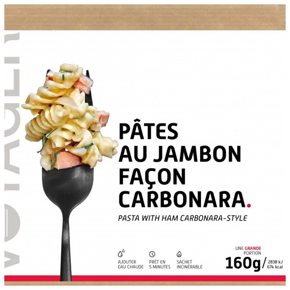 Élaborées avec amour par Voyager, les Pâtes Au Jambon Façon Carbonara permettent de vous requinquer avant de reprendre la randonnée en apportant de l’énergie au travers d’un revigorant repas chaud. Une fois l’eau chaude ajoutée, remuez et attendez quelques minutes…et c’est prêt !