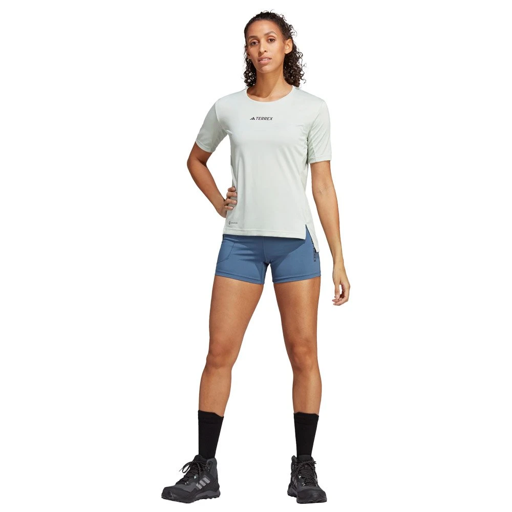 Le t-shirt de rando pour femme Adidas W Mt Tee est fabriquĂ© en polyester recyclĂ© et bĂ©nĂ©ficie de la technologie Aeroready pour une bonne gestion de l’humiditĂ©. Son traitement anti-odeurs Polygiene vous garantit une sensation de fraicheur durable et la coupe plus longue Ă l’arrière offre une couverture optimale du bas du dos. Le logo Terrex rĂ©flĂ©chissant amĂ©liore votre visibilitĂ© dans l’obscuritĂ© et les goussets sous les bras favorisent le confort durant vos sorties sur les chemins.Â
