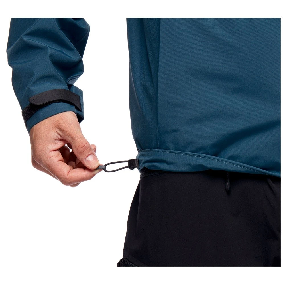 La veste pour homme Black Diamond Liquid Point Shell a Ă©tĂ© pensĂ©e pour la randonnĂ©e ou l’alpinisme lĂ©ger, afin d’apporter une protection efficace en cas d’intempĂ©ries soudaines. Particulièrement lĂ©gère et peu encombrante, cette veste technique conçue avec une membrane Gore-Tex Paclite est totalement coupe-vent, durablement impermĂ©able, tout en garantissant une grande respirabilitĂ©. Ses zips Ă©tanches ainsi que les cordons de serrage du bas de veste et les velcros aux poignets, qui permettent un ajustement ultra prĂ©cis, optimisent cette protection Ă l’air et l’humiditĂ©. Disposant de ventilations zippĂ©es sous les bras, elle offre la possibilitĂ© d’apporter un flux d’air supplĂ©mentaire pour rĂ©guler la tempĂ©rature lorsque l’effort se fait plus intense. Enfin, cette veste est dotĂ©e d’une capuche ajustable compatible avec un casque d’escalade, ou encore de poches repose-mains zippĂ©es pour y glisser topo ou autres accessoires. Un très beau modèle, compact et efficace, conçu avec tout le savoir-faire reconnu de Black D.