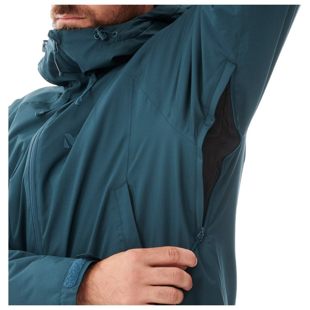 La veste de randonnĂ©e pour homme Millet Fitz Roy Insulated Jkt M est un modèle Ă©coresponsable dotĂ© d’une membrane DRYEDGE Micro Ripstop 2L qui protège efficacement de l’humiditĂ© et rĂ©siste bien Ă l’usure. Toutes les coutures sont thermo-soudĂ©es afin de complĂ©ter l’impermĂ©abilitĂ© de la veste et une doublure Fiberproof offre un très bon confort thermique. La capuche rĂ©glable protège la tĂŞte des Ă©lĂ©ments et des ventilations intĂ©grĂ©es aux aisselles aident Ă Ă©vacuer rapidement le surplus de chaleur.Â