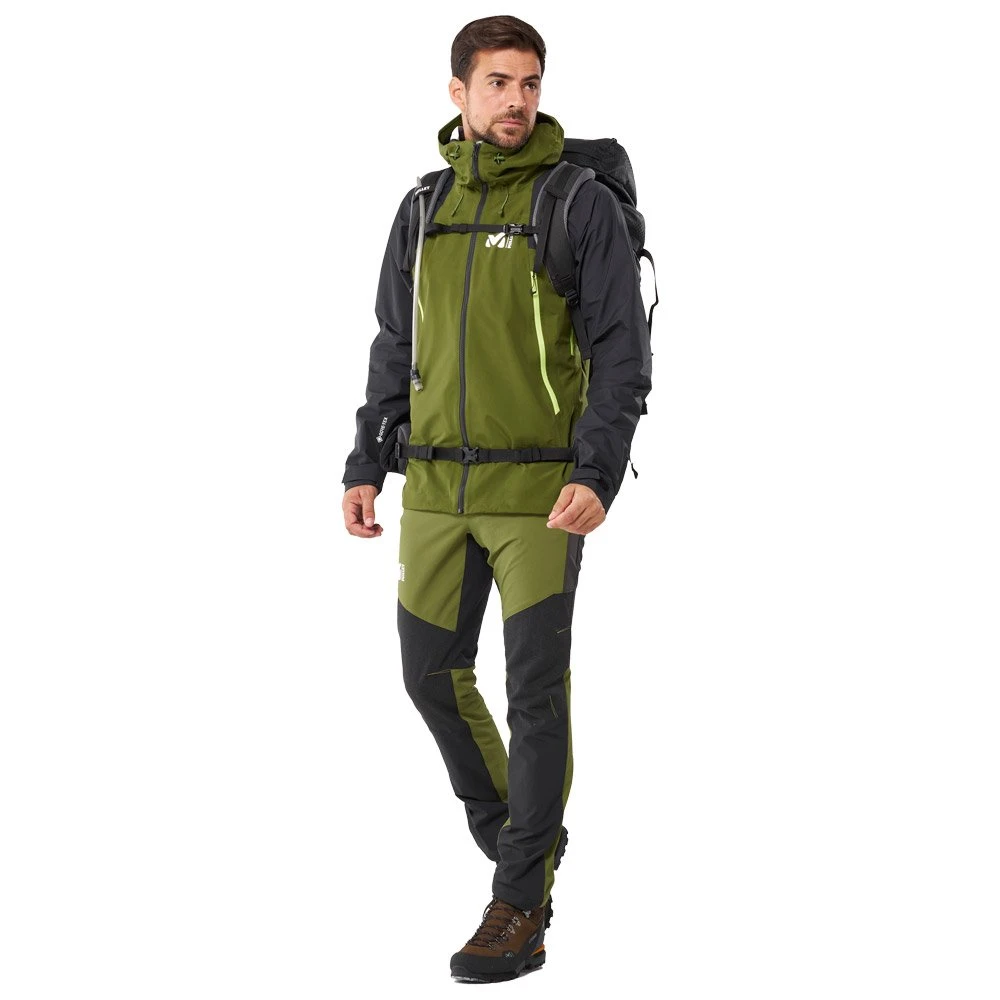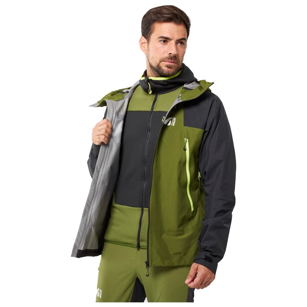 La veste K Hybrid de Millet vous protège des Ă©lĂ©ments durant vos sorties en ski de rando et alpinisme. Sa conception allie du Gore-Tex trois couches rĂ©sistant sur ses manches avec une membrane Gore-Tex Paclite plus lĂ©gère mais extrĂŞmement efficace sur le corps. Pour garantir la protection contre l’humiditĂ©, toutes les coutures sont thermosoudĂ©es. Ses deux poches latĂ©rales sont rĂ©haussĂ©es afin de rester accessibles si vous portez un baudrier. Sa taille ajustable par cordon de serrage et ses poignets rĂ©glables par Velcro assurent un fit optimal pour une totale libertĂ© de mouvement. Sa capuche Ă©galement ajustable est dotĂ©e d’une visière intĂ©grĂ©e avec câble de maintien. Des zips d’aĂ©ration sous les bras vous permettent d’augmenter le niveau de ventilation si besoin. Â